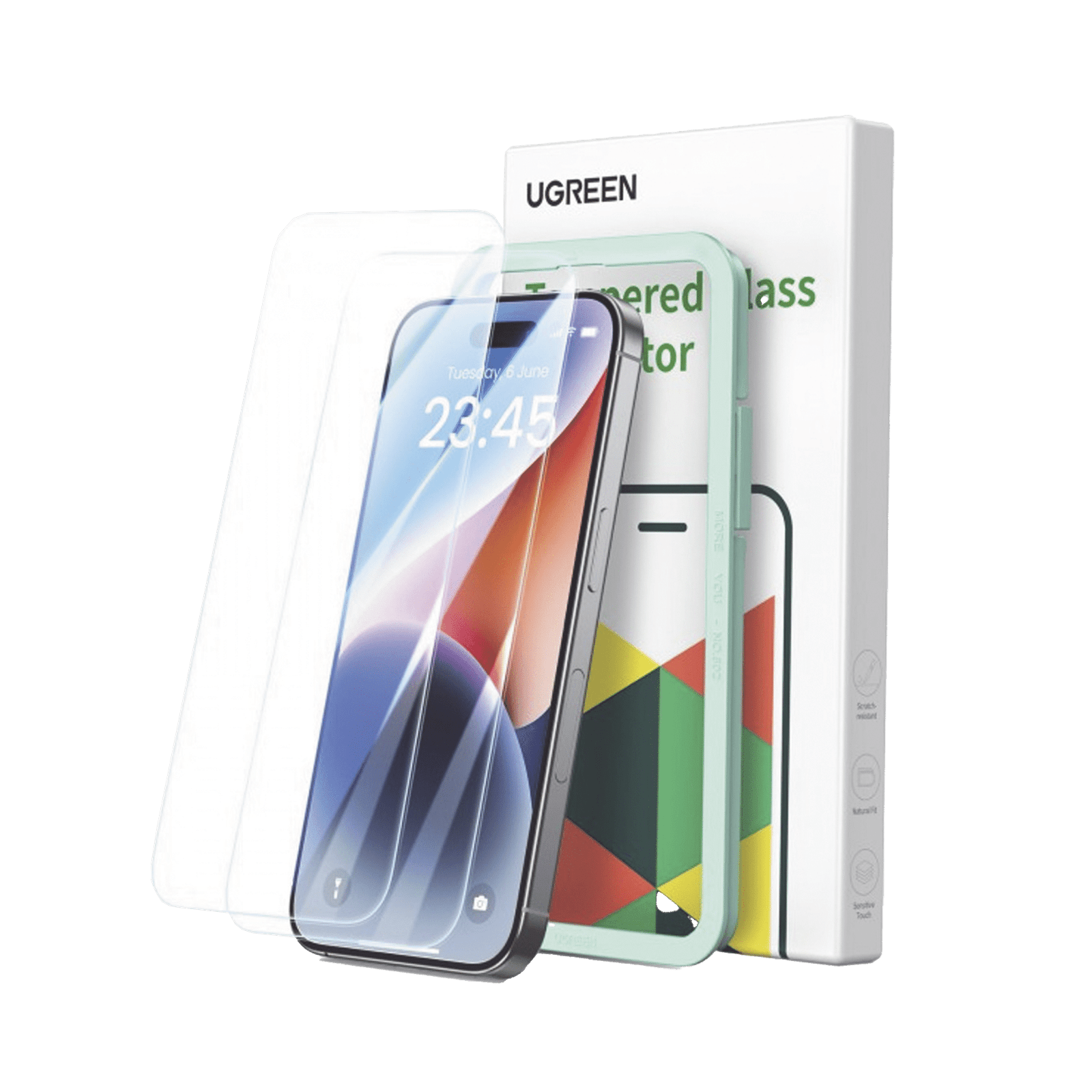 1 valoración en Protector de pantalla UGREEN HD con marco de instalación para iPhone 15 Plus/16 Plus (paquete de 2)