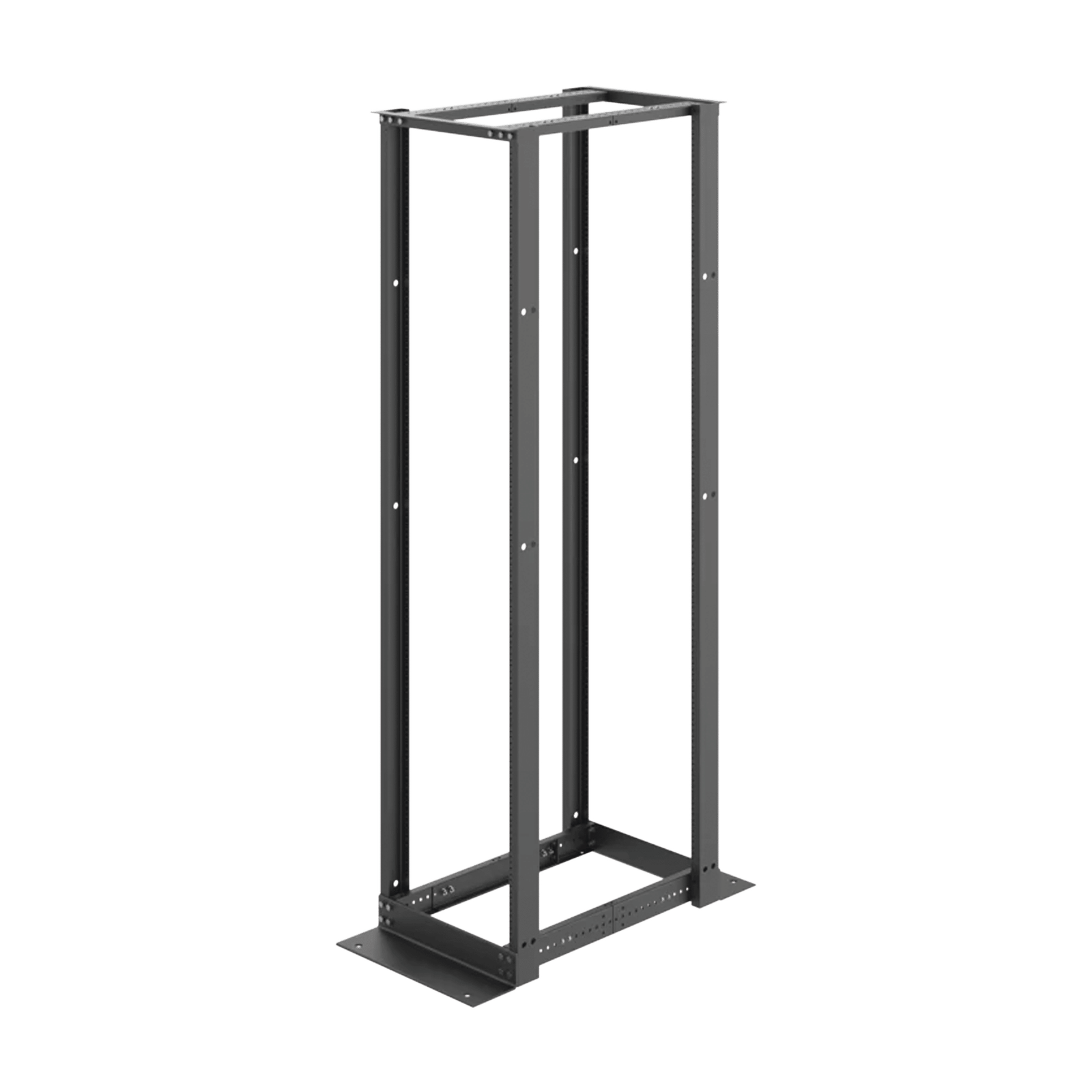 Rack de Cuatro Postes Estándar de 19″, Rieles Numerados y Roscados #12-24, Profundidad Ajustable de 450 a 1050 mm, 45 Unidades de Rack, Color Negro
